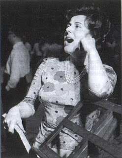 La cantante è ancora eccezionale per padronanza tecnica, risulta sempre omogenea in tutta la gamma vocale, esegue benissimo le terzine di “scintille dans l’ombre” dove scende sotto al rigo per terminare sulle note centrali senza che la voce cambi colore o posizione vocale. Forse manca di slancio nelle quartine discendenti prima e ascendenti poi che precedono i si naturali ribattuti, che ovviamente risultano suoni pieni, facili e squillanti.