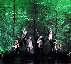 Detto ciò, due note sulla regia. Alle contraddizioni in cui versava la direzione d’orchestra ha fatto da contraltare la messa in scena di Cassiers, contestato all’uscita, per uno spettacolo quantomeno alterno, di poca presa, molte contaminazioni e dejà vue, freddo perché troppo high tech negli elementi fondanti. Ha cercato di creare atmosfere sfruttando retroproiezioni di vario tipo, naturalistiche, materiche, ombre etc…su un fondale in grado di trasformarsi in un setto murario tagliato attraverso cui filtravano i riverberi della fucina del Nibelheim della scena terza. Le proiezioni mobili di dirupi ed alture si alternavano ad altre di vapori, di fondali forse in metallo acidato, le ombre dei Giganti e perfino un orribile insieme di corpi a bassorilievo nel finale ( davvero deprecabile ed estraneo alla cifra della serata ..). Al preludio, ben governato da giochi di luci nel buio della scena, la solita vasca d’acqua quale metafora del Reno in cui si aggirano le Figlie e Alberich e….i mimi. Mimi danzanti, che recitano, danzano e variamente interagiscono con i protagonisti durante la serata, a perfezionare, a dire del regista stesso, la Gesamtkunstwerk di Wagner. Idea banale ed inutile, che ha infastidito non poco molti del pubblico, perché, di fatto, priva di efficacia e senso. Il gusto per l’high tech ci è stato poi propinato, senza troppa efficacia, nella piattaforma mobile adorna di fari da studio televisivo nella scena del Nibelheim ( una sorta di trono di Alberich…!), nel pagamento del riscatto da parte dei Nani mediante lastre retroilluminate al neon giallo stile Star Wars ( scena peraltro non priva di una certa suggestione anche grazie all’orchestra.. ) come nelle proiezioni stesse, ma senza che ne uscisse una cifra chiara ed unitaria per lo spettacolo. Poca regia, déi con abiti sdruciti o polverosi visti mille volte, i Loge o i Donner vestiti e pettinati come caricature e via di seguito. Un mix poco convincente perché evidentemente di poche idee. Insomma, aver poco o nulla da dire di nuovo, come invece dovrebbe essere per una new production di tale portata.
